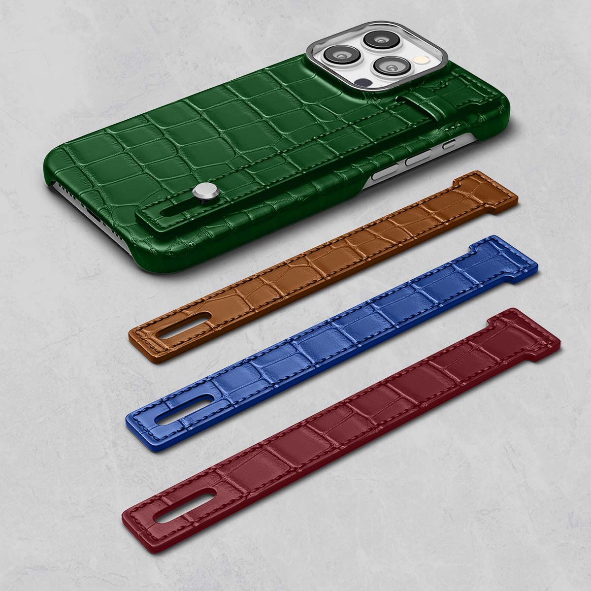 The case features a strap for a convenient grip of your iPhone. The strap is made detachable to let you personalize the case to your liking and create a unique color combination. The case is crafted from supreme genuine alligator leather and is MagSafe compatible. Parisian design executed by master craftsmen.