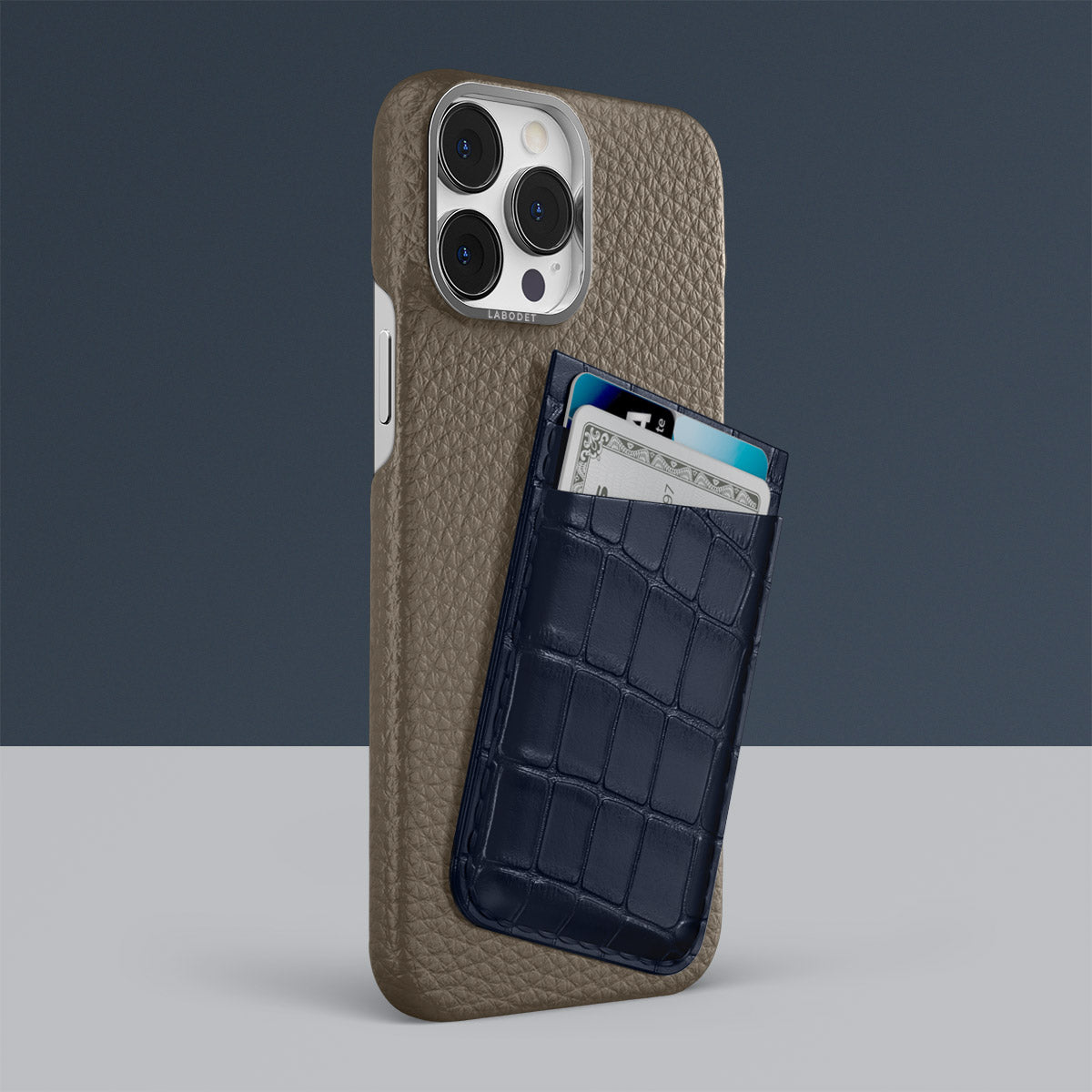 The Wallet is a compact MagSafe accessory that aligns perfectly with your iPhone. It has strong built-in custom MagSafe magnets and nano-polymer lining for easy and secure attachment to the back of the iPhone. The Wallet is crafted in supreme genuine alligator leather and has two slots for your ID or credit cards. Crafted with the most careful attention in Paris, France.