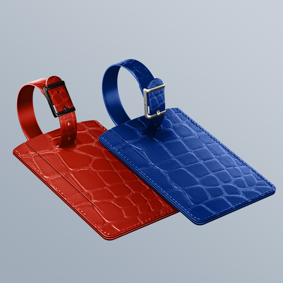 Keep track of your luggage in style with this leather luggage tag. Made from supreme genuine alligator leather with Italian calf leather lining, the tag is equipped with an adjustable top handle. Add your personal information to the single card stored inside to ensure your luggage's safe return any time you travel.